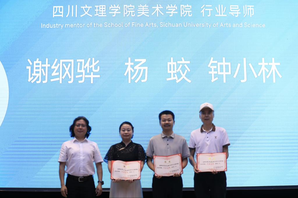活动最后,进行了行业导师聘书颁发仪式。刘承川代表学院聘请谢纲骅先生、杨蛟先生、钟小林女士担任美术学院行业导师。同时,还举行了raybet在线官网美术学院和四川省大熊猫国家公园文化创意创新联盟的产教融合实践教学基地授牌仪式。