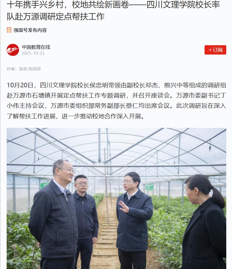 【学习强国】十年携手兴乡村,校地共绘新画卷——raybet在线官网校长率队赴万源调研定点帮扶工作
